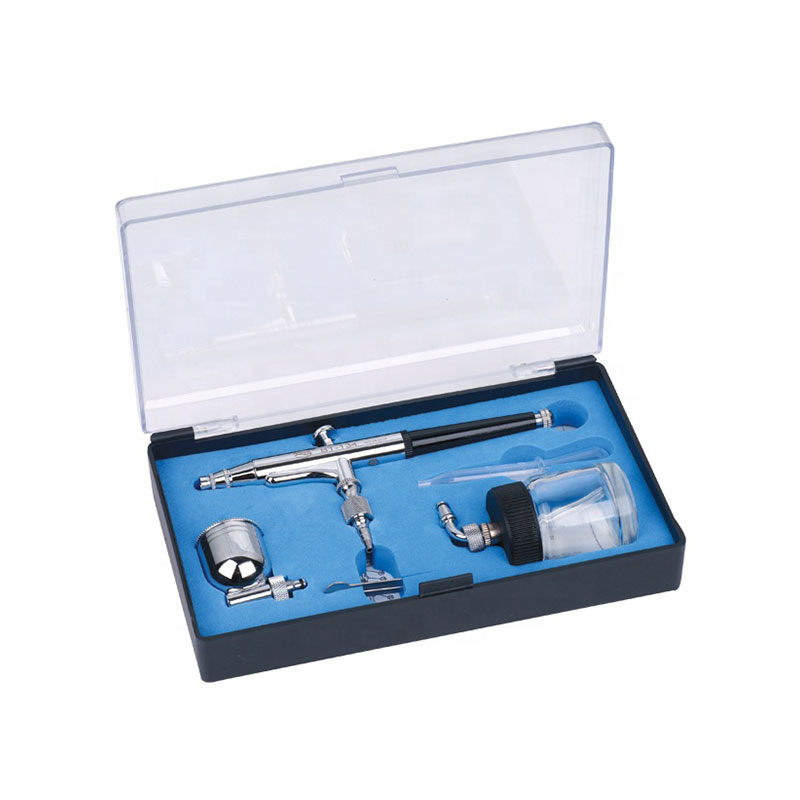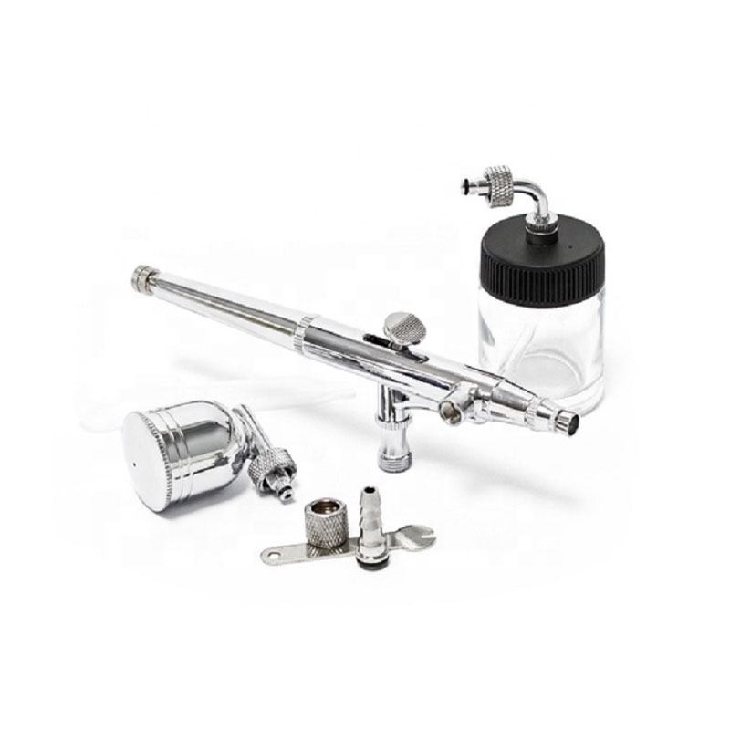 Ciri-ciri: 2option cawan tindakan berganda BT-134 airbrush dengan botol kaca untuk seni badan, seni kuku, dan menghias kek airbrush boleh digunakan untuk menarik kecerunan warna halus dan garis halus, serta semburan warna latar, sorotan, dan lain-lain.