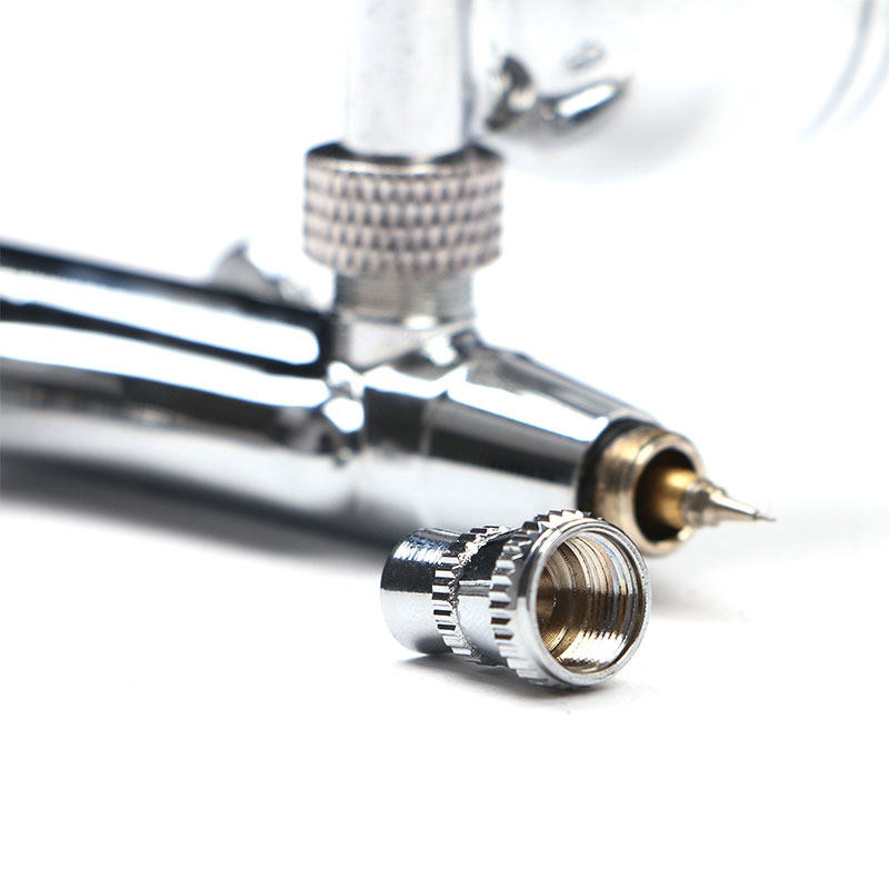 Ciri-ciri: 2option cawan tindakan berganda BT-134 airbrush dengan botol kaca untuk seni badan, seni kuku, dan menghias kek airbrush boleh digunakan untuk menyembur salutan pelindung halus atau bahan pembaikan.